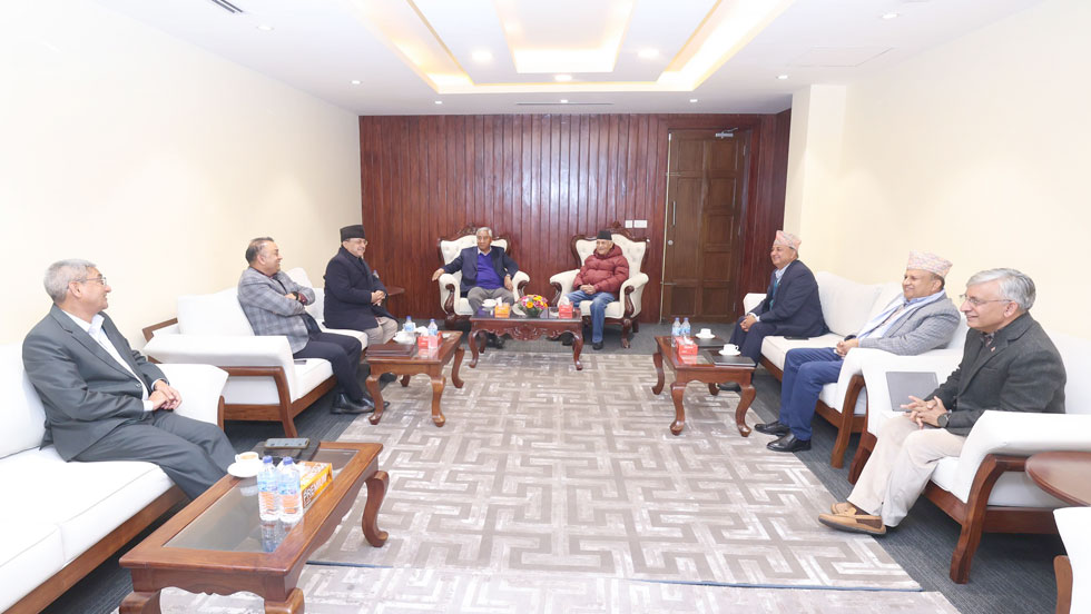 प्रधानमन्त्री एवं नेपाल कम्युनिष्ट पार्टी (एमाले) का अध्यक्ष केपी शर्मा ओली, नेपाली कांग्रेसका सभापति एवं पूर्व प्रधानमन्त्री शेरबहादुर देउवा र संयन्त्रमा संलग्न दुवै दलका नेताहरू बैठकमा सहभागी हुनुहुन्छ ।