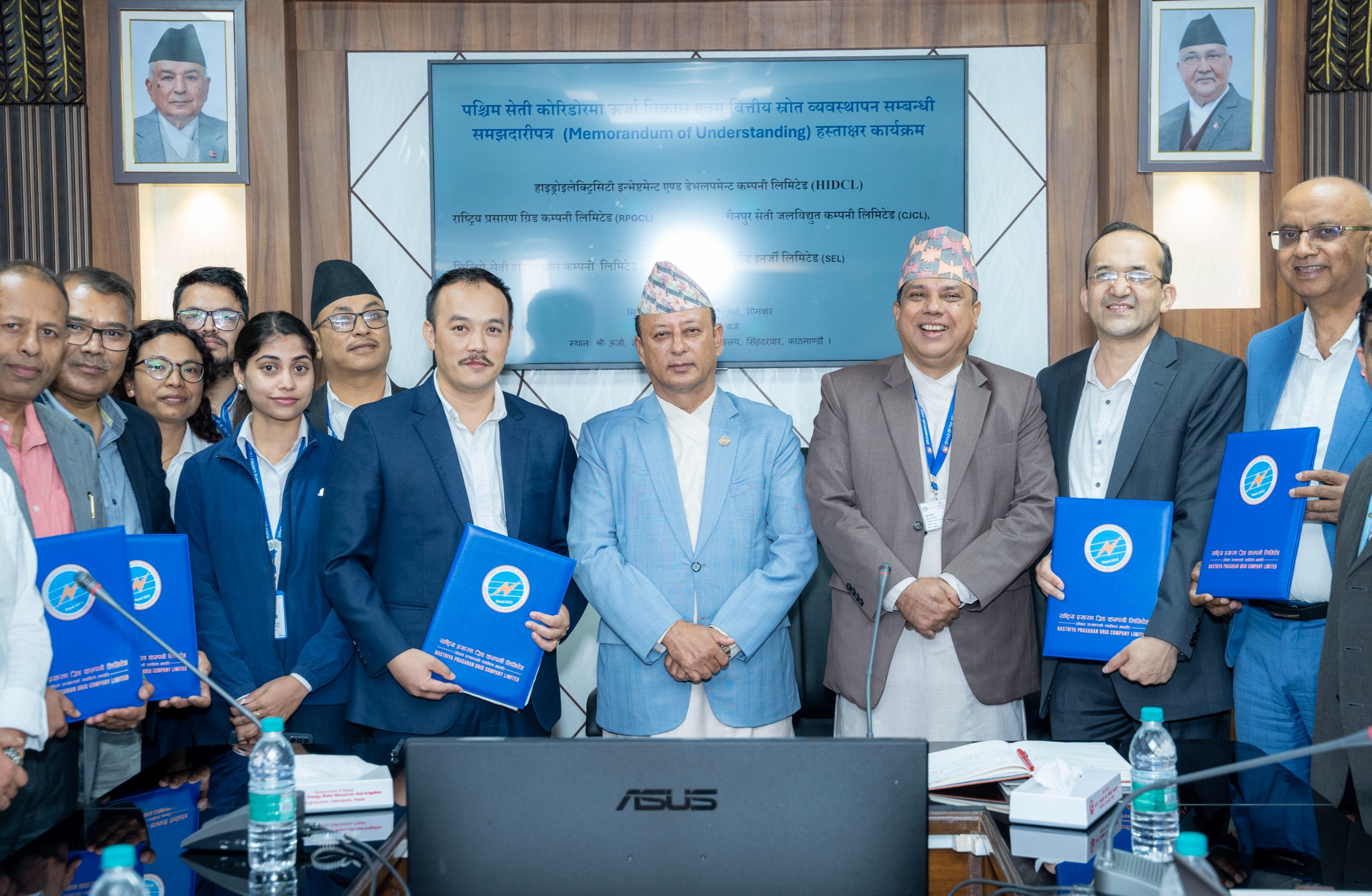 पश्चिम सेती कोरिडोर अन्तर्गतका जलविद्युत् आयोजना र प्रसारण पूर्वाधार निर्माणमा सहकार्य गर्ने उद्देश्यले सोमबार मन्त्रालयमा पाँच प्रतिष्ठित संस्थाहरू—हाइड्रो इलेक्ट्रिसिटी इन्भेस्टमेन्ट एण्ड डेभलपमेन्ट कम्पनी लिमिटेड (HIDCL), राष्ट्रिय प्रसारण ग्रिड कम्पनी लिमिटेड (RPGCL), चैनपुर सेती जलविद्युत् कम्पनी लिमिटेड (CJCL), चिलिमे सेती हाइड्रोपावर कम्पनी लिमिटेड (CSHC) र समृद्धि इन्जी लिमिटेड (SEL) बीच समझदारीपत्रमा हस्ताक्षर भएको हो।