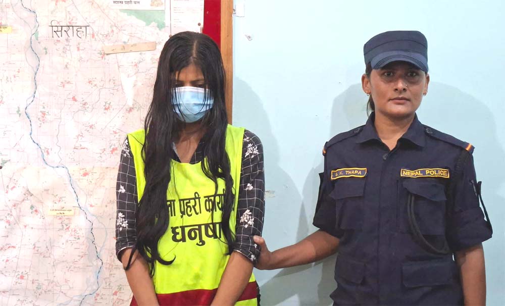 जनकपुरधाम, ५ साउन । जनकपुरधाममा विवाहेत्तर सम्बन्धको कारण हत्या भएको घटनामा प्रहरीले एक युवतीलाई पक्राउ गरेको छ । पक्राउ पर्नेमा महोत्तरीको बनौटा घर भई जनकपुरधाम उपमहानगरपालिका वडा नं. ४ स्थित डेरा गरी बस्ने २१ वर्षीया जुली झा रहेको प्रहरीले जनाएका छन् । सोमवार जिल्ला प्रहरी कार्यालय धनुषामा आयोजित पत्रकार सम्मेलनमा प्रहरीले युवतीलाई सार्वजनिक गरेको हो । शनिवार राति करिब साढे ३ बजेको समयमा महोत्तरीको पर्सा गाउँँपालिका १, पर्सा टोल बस्ने ३२ वर्षीय विमलेश यादवको जनकपुरधाम स्थित जीरोमाईलमा रहेको होटेलमा मृत फेला परेका थिए । धनुषाका प्रहरी उपरीक्षक नरहरी रेग्मीले दुबैजना सम्बन्धमा रहेको समयमा भएको विषयमा विवाद हुँदा युवतीले युवकको हत्या गरेको देखिएको बताएका छन। विवाहित युवक यादव र आरोपित झाबीच अबैध सम्बन्ध रहेको प्रहरीले जानकारी दिएको छ। उक्त सम्बन्धको क्रममा बनाएको भिडियो देखाएर युवकले युवतीलाई ब्लाकमेल गर्दै आएका थिए । शनिवार राति करिब १० बजेको समयमा जीरोमाईलस्थित रहेको होटेल एसपी एण्ड गेष्ट हाउसको १०२ नम्बर कोठामा दुबैजना सँगै बसेका थिए । राति २ बजेर ५७ मिनेटमा युवक रगतले भरिएको अवस्थामा पहिलो तल्लाबाट नग्न अवस्थामा झरेका थिए । ३ बजेर ४ मिनेटमा युवती भागेको सिसिटीभी फुटेजमा देखिएको प्रहरी प्रवक्ता प्रहरी नायव उपरीक्षक बरूणबहादुर सिंहले बताए । युवतीलाई आइतवार दिउँसो १२ बजे महोत्तरीको परौलतर्फ भाग्दै गरेको अवस्थामा पक्राउ गरिएको सिंहले बताए । यस सम्बन्धमा थप अनुसन्धान भइरहेको जिल्ला प्रहरी कार्यालय धनुषाले जनाएको छ ।