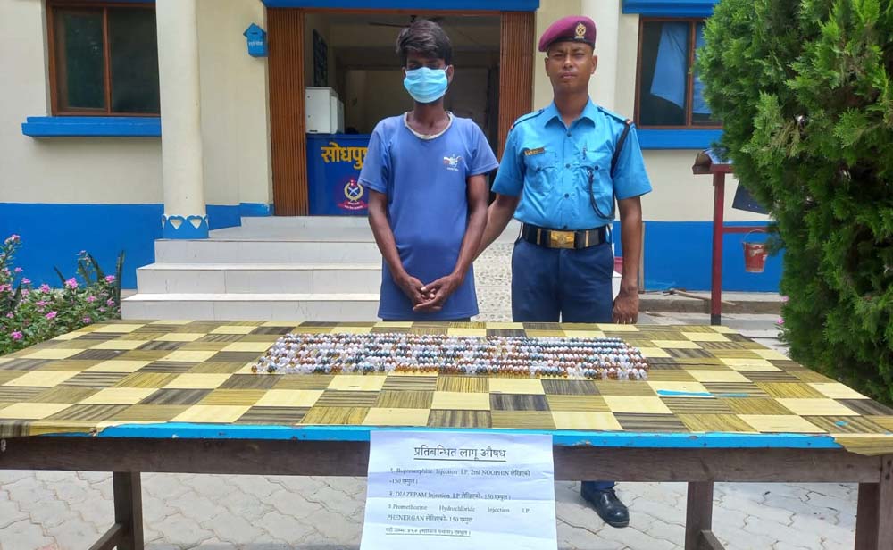वीरगंज, ११ साउन । जिल्ला प्रहरी कार्यालय, पर्साले पकहामैनपुर गाउँपालिका वडा नं. १ धोरे सडकखण्डबाट लागूऔषधसहित एकजनालाई पक्राउ गरेको जनाएको छ । पकाहामैनपुर गापाको वडा नं. २ मधुबनीका २२ वर्षीय दिलिप कुमार सहनीले बोकेको झोलाबाट नुफिन, डाइजेपाम र फेनारगन ४५० एम्पुल बरामद भएको जिप्रका, पर्साले जनाएको छ । प्रहरी चौकी धोरेको नियमित चेकिङ टोलीले झोलामा आलु र प्याज मा लुकाइएको अवस्थामा लागूऔषध फेला परेपछि थप अनुसन्धानका लागि इलाका प्रहरी कार्यालय पोखरिया, पर्सामा पठाएको र पर्सा जिल्ला अदालतबाट सात दिनको म्याद थप अनुमति लिई अनुसन्धान कार्य भइरहेको प्रहरीले जनाएको छ।