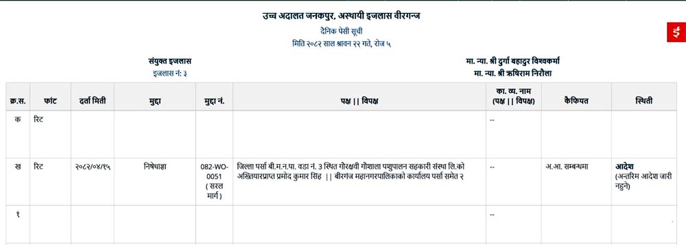 साविक इनर्वा भाठा वडा नं. २ मा पर्ने कित्ता नं. ५३ को १९ कट्ठा १० धुर जग्गा “गौरक्षणी गौशाला” को नाममा लालपुर्जा कायम रहेको छ । सोही जग्गामा “गौरक्षणी गौशाला पशुपालन सहकारी संस्था लिमिटेड, वीरगंज–३” नामको संस्थामार्फत केही भूमाफिया समूहले दाबी गर्दै निषेधाज्ञा मागसहित गएको साउन १५ गते उच्च अदालत वीरगंजमा मुद्दा दायर गरेका थिए । उक्त सहकारी संस्था मूल गौशालाको नामसँग मिल्दोजुल्दो राखेर, नामको भ्रम सिर्जना गर्दै भूमाफियाले जग्गा कब्जा गर्न खोजेका थिए । प्रमोद कुमार सिंह नेतृत्वको समूहले यो योजना अघि बढाएका थिए । सिंहले नै अदालतमा निषेधाज्ञा माग गर्दै मुद्धा दायर गरेका थिए ।