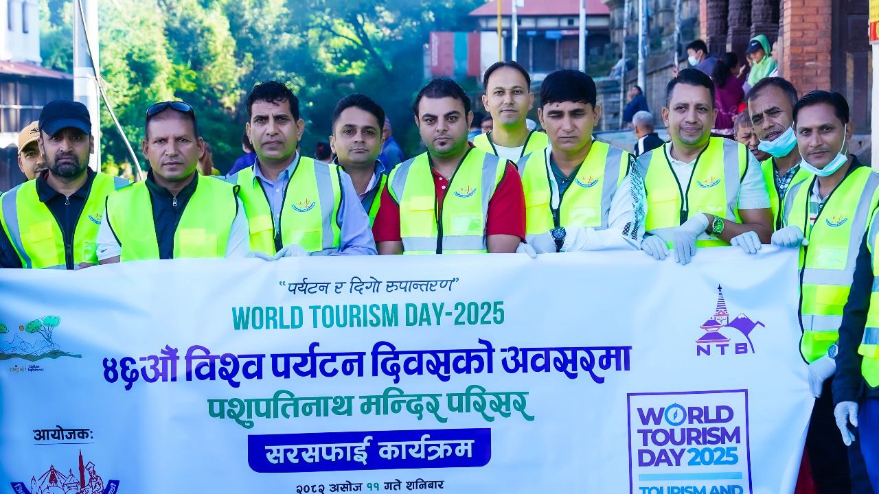 काठमाडौं । ४६औँ विश्व पर्यटन दिवसको अवसरमा जिल्ला होटल व्यवसायी संघ काठमाडौंले शनिबार पशुपतिनाथ मन्दिर परिसर र वनकाली क्षेत्रको सरसफाइ कार्यक्रम सम्पन्न गरेको छ। कार्यक्रममा होटल व्यवसायी महासंघ, होटल तथा पर्यटन व्यवसायी संघ बागमती प्रदेश, जिल्ला होटल व्यवसायी संघ काठमाडौंसँग आवद्ध इकाइहरू तथा विश्व साइकल टुर च्याम्पियन नेपालका प्रतिनिधिहरूको समेत सहभागिता रहेको थियो।