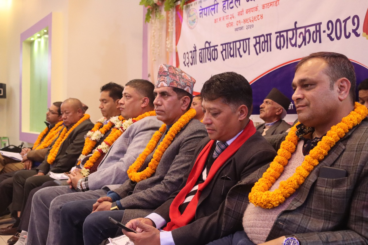 त्यसैगरी विभिन्न सामाजिक संघ–संस्थाका प्रतिनिधि, सञ्चारकर्मी तथा होटल व्यवसायी सदस्यहरूको उत्साहजनक उपस्थिति रहेको साधारण सभामा अतिथिहरूले संघको गतिविधिको प्रशंसा गर्दै होटल व्यवसायको सुदृढीकरण, व्यवसायिक मर्यादा र सामाजिक उत्तरदायित्वमा संघले खेलेको भूमिकालाई अझ प्रभावकारी बनाउनुपर्नेमा जोड दिनुभयो।