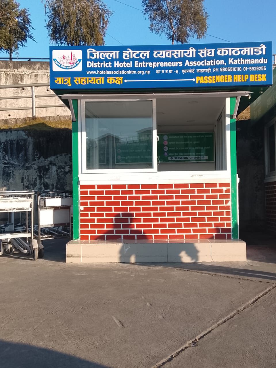 काठमाडौं।जिल्ला होटल व्यवसायी संघ, काठमाडौंले त्रिभुवन अन्तर्राष्ट्रिय विमानस्थलको आगमन कक्षबाट बाहिर निस्कने बित्तिकै दायाँपट्टि यात्रु सहायता कक्ष सञ्चालनमा ल्याएको छ। यस सहायता कक्षमार्फत स्वदेशी तथा विदेशी यात्रुहरूलाई निःशुल्क, भरपर्दो र निरन्तर सेवा प्रदान गरिँदै आएको संघले जनाएको छ। नेपाल भ्रमणमा आउने यात्रुहरूलाई सुरक्षित, व्यवस्थित र सकारात्मक अनुभूति दिलाउने उद्देश्यका साथ सञ्चालन गरिएको यो सेवा पछिल्ला दिनहरूमा यात्रुहरूको भरोसाको केन्द्र बन्दै गएको छ।