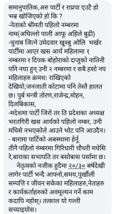 घिमिरेको टिप्पणीमा खस-आर्य महिला कोटामा चुनाव जित्ने हैसियत भएका र लामो समयदेखि सक्रिय नेतृहरूलाई पन्छाएर नयाँ अनुहारलाई अगाडि सारिएको उल्लेख छ। साथै जनजाति कोटा र अन्य समूहमा पनि अनुभव, योगदान र संगठन निर्माणमा भूमिका खेलेका नेताहरू ओझेलमा पारिएको उनको आरोप छ। मधेसमा पार्टीको संगठन कमजोर रहेको अवस्थामा त्यही प्रदेशका अध्यक्षलाई खस-आर्य कोटाबाट पहिलो नम्बरमा राख्नु राजनीतिक र संगठनात्मक दुवै हिसाबले अव्यवहारिक भएको उनको भनाइ छ।