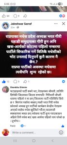 राप्रपा वीरगंज महानगर अध्यक्ष जलेश्वर सर्राफको fb पोस्ट