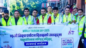 काठमाडौं । ४६औँ विश्व पर्यटन दिवसको अवसरमा जिल्ला होटल व्यवसायी संघ काठमाडौंले शनिबार पशुपतिनाथ मन्दिर परिसर र वनकाली क्षेत्रको सरसफाइ