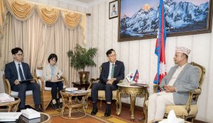 काठमाडौं । ऊर्जा, जलस्रोत तथा सिंचाई मन्त्री दिपक खड्का र नेपालकालागि दक्षिण कोरियाली राजदूत पार्क ताइ योङबीच शिष्टाचार भेट भएको